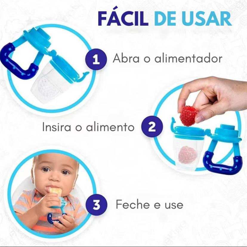 ✔️ Chupeta Alimentadora com Tampa Protetora – ajuda o bebê a experimentar frutinhas e alimentos pastosos sem risco de engasgo, além de aliviar o desconforto da dentição.